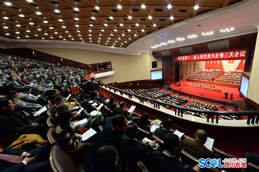 1月28日上午10时,四川省第十二届人大第三次会议第一次全体会议在锦江大礼堂召开。省人大常委会主任王东明宣布四川省第十二届人大第三次会议开幕。省长魏宏作政府工作报告。