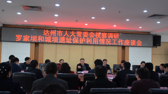 在3月16日召开的市人大常委会视察调研工作座谈会上,副市长吴应刚代表市人民政府作了关于巴文化发掘与研究工作的情况汇报。视察调研组部分成员和市级相关部门负责人精心准备,结合视察调研情况作了很好的发言。大家一致认为,巴文化作为巴蜀文化的重要组成部分,其研究和开发利用等工作才刚刚起步,而罗家坝遗址和城坝遗址的考古发掘佐证,对填补巴文化研究的空白显得地位独特、价值珍贵。如何加强对罗家坝和城坝遗址的保护发掘、合理做好开发利用,加大宣传扩大影响力,提升达州文化软实力是大家共同的愿望和心声。