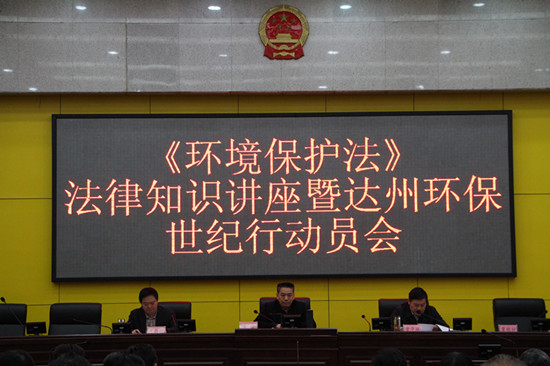 4月9日上午,达州市人大常委会召开环保世纪行活动动员会,这标志着2015年达州环保世纪行活动正式启动。市人大常委会主任胥健和市委常委、市政府副市长黄平林出席动员会并讲话,市人大常委会副主任王新权主持会议。市人大常委会在家的副主任及秘书长,市人大各专门委员会、常委会各工作机构负责人,环保世纪行各成员单位主要负责人,各县(市、区)人大常委会、政府和经开区管委会相关领导,各县(市、区)环保局负责人,部分企业代表以及新闻媒体的同志共计一百余人参加了会议。