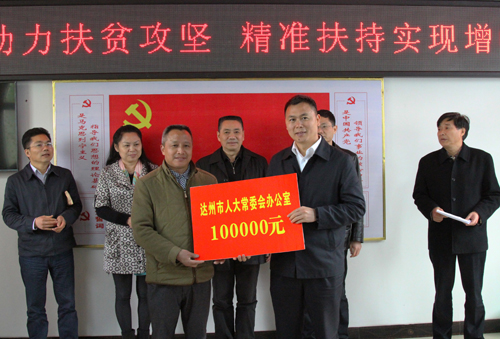 会上,相关部门(单位)负责人作了发言,中石油川庆钻探工程有限公司、市人大常委会办公室、市规划局、市路政支队、四川广电网络达州分公司、四川桓源科技有限公司和渠县人大常委会现场为金蝉村捐赠了帮扶资金共计35万元,用于发展特色产业、助力脱贫攻坚。