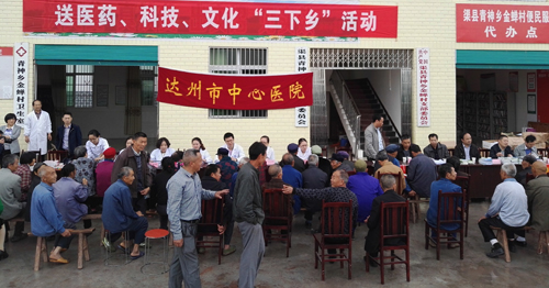 春雨淅沥。当天上午,市农业局、市文体广新局、市中心医院和渠县农林局在金蝉村村支两委办公室前的院坝里搭起了一排长桌,围绕义务诊病体检、农业技术指导、免费发放图书药品等6项活动内容,来自各部门(单位)的专家领导及工作人员共计20余人,各施所长,通过现场设立的10处服务咨询点,为金蝉村村民献上了品类丰富、内容扎实的文化科技卫生“自助餐”,受到了基层的热烈欢迎、收获了群众的真心赞扬。