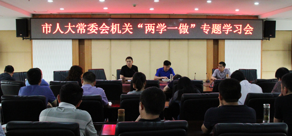 5月25日,市人大机关组织全体党员干部举行“两学一做”专题学习会,市人大常委会副主任、秘书长陈绪科出席会议。