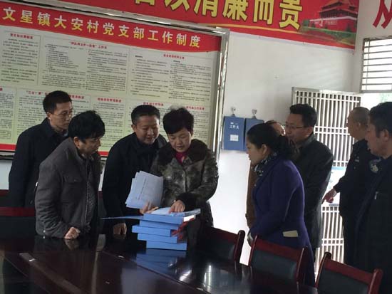 梅榕副主任一行来到大安村,认真查看精准识别档案资料、产业发展、基本设施建设和残疾人贫困情况,详细了解大安村建档立卡贫困户基本情况和脱贫措施。在听取了大安村脱贫攻坚工作情况汇报和文星镇扶贫工作开展情况汇报后,梅榕副主任对各级干部脱贫攻坚重点突出、措施务实表示赞赏,对该镇党委政府高度重视、稳妥推进的做法表示认同,对该村完善道路建设给予充分肯定,对该村尚无卫生室和文化室,残疾人较多,贫困程度较深,无产业支撑扶贫等问题,认真研究,提出对策。她强调:为确保2017年大安村整村摘帽,43户150人脱贫,镇、村干部要认真分析村情和贫困状况,厘清思路,针对性地引进社会资本进行产业扶贫和乡村旅游扶贫,采取灵活的运行模式,通过业主承租土地,贫困户加入专业合作社等方式,带领贫困户脱贫致富。要抓住时间节点,扶贫工作不能等、靠、要,要做好与县级相关部门工作对接,帮助业主尽快做好项目规划,尽早实施。要压紧压实“第一书记”和驻村工作组责任,围绕“贫困村摘帽、贫困户脱贫”的目标,推动政策措施精准落地落实。市、县残联要根据该村残疾人贫困状况采取切实有效措施开展定向帮扶。市、县帮扶部门要发挥职能作用,想办法,添措施,切实推进脱贫攻坚工作。要对村民加强感恩教育、奋进教育,激发贫困户脱贫致富内生动力,形成外部多元扶贫与内部自我脱贫的互动机制,确保如期实现脱贫攻坚目标。