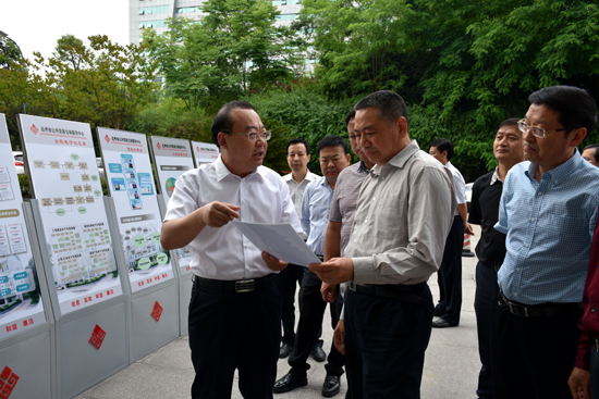 胥健一行在市政府办公室主任谯学伟和市公共资源交易服务中心主任李晓华的陪同下边走边看边听,实地视察了市交易中心受理大厅、开标厅、电子监督区、专家抽取室、评审区等区域,详细了解市交易中心在平台建设、业务办理、工作流程、电子化交易、抽签法电子招标、内控机制建设等方面所做的大量工作和取得的良好成效。