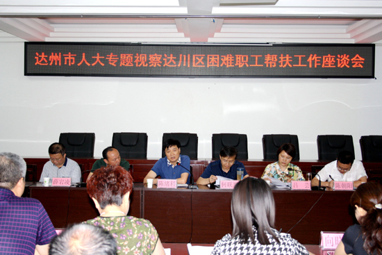 视察组一行顶着烈日酷暑,先后来到万源市青花镇立信社区、太平镇燎原社区,通川区复兴镇罗家坝、新桥社区,达川区翠屏街道办事处南坝、草街子社区和大竹县团坝镇中山煤业集团,实地查看了社区帮扶中心活动室建设、硬件设施和软件资料,详细了解了社区困难职工生产生活情况,分别在各视察点组织县(市、区)人大、政府相关职能部门、乡镇政府及部分困难职工代表召开了座谈会。会上,听取了各地城镇困难职工帮扶工作情况汇报和部分困难职工的意见,了解存在的困难和问题,对各地帮扶工作给予了充分肯定,并针对各地实际情况,有针对性地提出了具有可操作性的意见建议。
