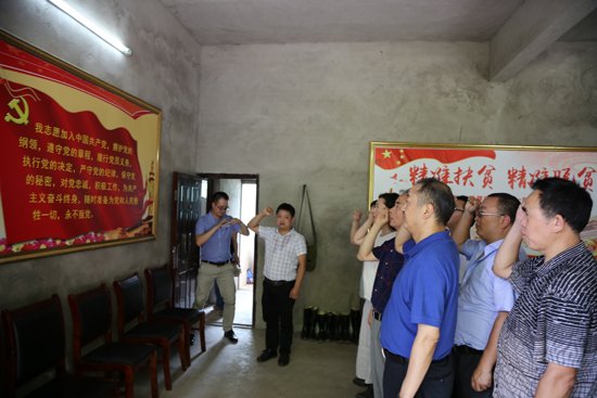 在吴家沟村第二党小组活动室,郑友清一行察看了市委编办帮助村党支部加强基层组织建设取得的成效,并通过座谈交流的方式、以质朴的语言向村级党员诠释了省第十一次党代会的主题主旨和主要内容。同时强调,要精心安排,把省党代会精神的学习宣讲与脱贫攻坚有机结合。当前脱贫攻坚任务艰巨、责任重大,各帮扶单位要细化年初目标,强化政治责任担当,落实好年初目标任务;镇村要强化监管,确保扶贫项目资金、危房改建、防汛减灾等工作监管到位;村支两委要再次精准识别贫困对象,强化脱贫措施,培育好典型,因地制宜,发展好集体经济和农户经济;新一轮驻村工作组要对比目标,精细实施,把握进度,确保实效。