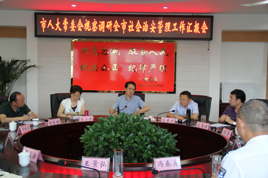 7月18日、20日,市人大常委会副主任吴应刚带领部分常委会组成人员和市人大代表深入基层,就全市社会治安管理工作进行调研。副市长、市公安局长王景弘陪同调研。