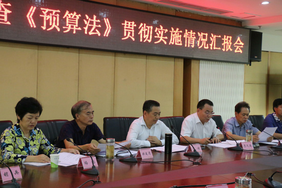 市人大常委会副主行郑友清、吴应刚、梅榕、陈绪科、胡兵、朱丰年,部分常委会委员,市人大各专委会及常委会工作机构负责人,检查组成员,市级财政、审计、国税、地税、人社、国资、经开区管委会等单位负责人参加了执法检查汇报会。(市人大财经委 李志贤)