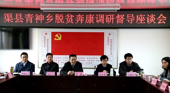 随后,胥健主任一行还听取了青神乡,金蝉村、滑石村2017年脱贫攻坚工作情况和2018年工作安排。胥健主任要求大家一要乘势而上,组织干部群众认真学习《中共中央 国务院关于实施乡村振兴战略的意见》,了解乡村振兴战略的政策措施和具体安排;二要切实巩固好脱贫攻坚取得的成果,确保脱贫路上不落一人;三要及时研究制定来年基础设施建设及产业项目发展目标;四要统筹加强对两村的组织领导。期间,胥健主任一行还实地查看了滑石村党群服务中心建设情况。