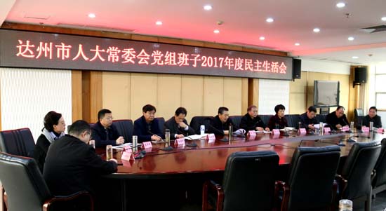 2月6日,达州市人大常委会党组书记、主任胥健主持召开市人大党组班子2017年度民主生活会,市人大常委会党组班子全体成员出席会议,常委会非共产党员副主任应邀列席会议。市委组织部、市纪委派驻纪检组负责同志到会指导。