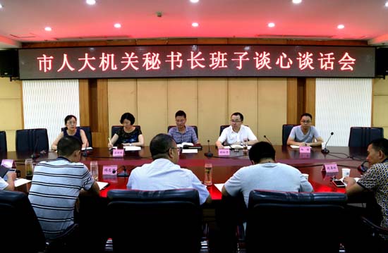 为进一步推动党风廉政建设“两个责任”落地落实,7月20日,市人大常委会党组成员、秘书长、办公室主任向守宇与市纪委派驻纪检组和市人大机关党委、机关纪委一起,听取了市人大常委会秘书长班子成员半年述责述廉情况汇报,并开展了集体谈心谈话活动。