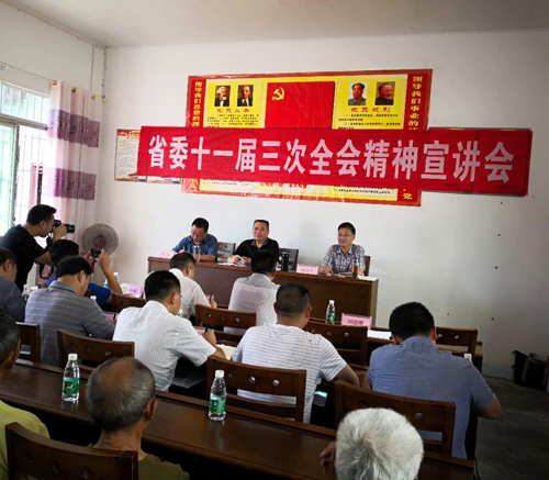 在随后召开的省委十一届三次全会精神宣讲会上,胥健主任深入浅出地对全会精神进行了宣讲,重点解析了《中共四川省委关于深入学习贯彻习近平总书记对四川工作系列重要指示精神的决定》和《中共四川省委关于全面推动高质量发展的决定》的内容要点。并从当地实际出发,结合当前番坝村深度贫困村脱贫攻坚工作的现状,提出了五点要求:一是坚定深度贫困村脱贫摘帽的信心和决心。番坝村有相对较好的发展基础,有红色文化资源,有各级党政的大力支持,只要脚踏实地苦干,一定能够如期脱贫摘帽。二是因地制宜做大做优特色产业。番坝村要立足当地实际,靠山靠吃山,补齐产业发展短板,发展好茶叶、烟叶、糯稻、药材、养蜂等产业,尤其是要把茶叶产业做大做优,同时抓好五小庭院经济,全面提高贫困群众的收益。三是进一步夯实发展基础。要发掘好开国少将张开基的相关史实资料,把柏树坪易地扶贫搬迁集中点建成红色文化教育基地,充分展示万源红色第一村的风采。四是精准实施各项兜底政策。要落实好各种惠农政策,确保国家的各项扶贫政策措施精准落地,做到脱贫路上不落下一户一人。五是全面倡导乡村文明新风。要在番坝村开展“感恩奋进、诚信守法、移风易俗、卫生整洁”为主题的乡风文明教育,修订村规民约,形成良好风气,走在全市乡村文明建设的前列。