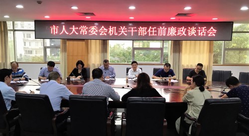9月26日,市人大常委会机关召开干部任前廉政谈话会,市人大常委会秘书长、办公室主任向守宇出席并讲话,副秘书长李斌主持谈话会。