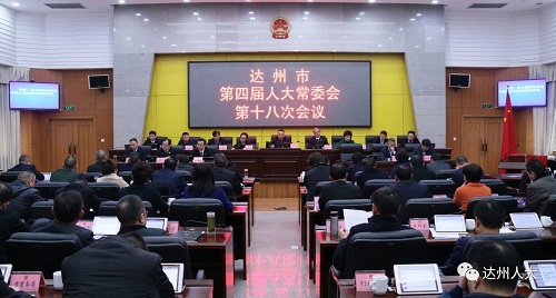 12月27日,市第四届人大常委会召开第十八次会议。市人大常委主任胥健主持会议。市人大常委副主任郑友清、吴应刚、梅榕、陈绪科、胡兵、朱丰年出席会议。会议决定,市四届人大四次会议大会于2019年2月22日至25日在巴山大剧院召开,会期4天。会议任命熊隆东为达州市监察委员会副主任,决定为达州市监察委员会代理主任。
