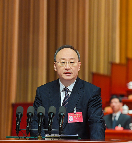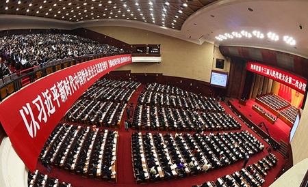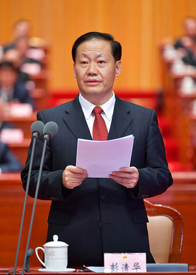 上午9时许,彭清华宣布:四川省第十三届人民代表大会第二次会议开幕!全体起立,奏唱中华人民共和国国歌,雄壮的国歌声响彻全场。