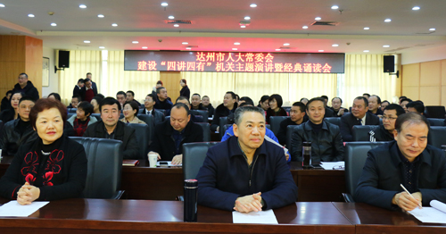 为认真贯彻落实党的十九大精神,建设“四讲四有”人大机关,鼓励机关干部职工积极参与,激发干事创业热情,丰富职工文化生活,1月31日,市人大常委会办公室举办建设“四讲四有”人大机关演讲暨经典诵读活动。市人大常委会主任胥健,市人大常委会副主任郑友清、梅榕、陈绪科、朱丰年出席活动。