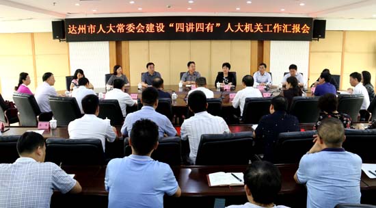 座谈会上,胥健对黄新初一行表示欢迎,汇报了市人大及其常委会基本情况及建设“四讲四有”人大机关情况。达州市人大常委会积极响应省人大常委会的号召,在市委的坚强领导下,在“一府一委两院”的大力支持下,把开展“四讲四有”人大机关建设活动作为加强自身建设的重要抓手,扎实推动活动有序深入开展。坚决践行“两个维护”,着力建设讲忠诚有信念的政治机关,坚定根本政治制度自信,着力建设讲法治有权威的权力机关,坚持谋全局抓具体,着力建设讲责任有担当的工作机关,坚持人民主体地位,着力建设讲宗旨有情怀的代表机关。