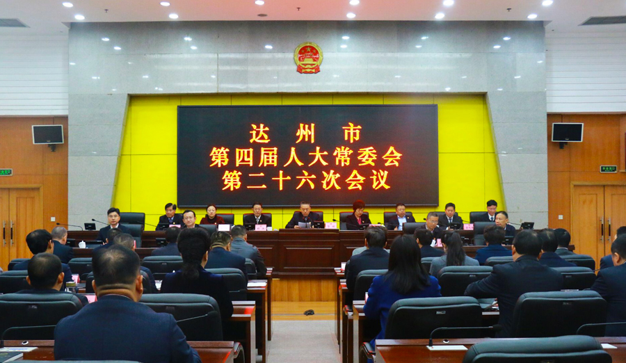 11月19日,达州市第四届人大常委会第二十六次会议召开。市人大常委会主任胥健主持会议。市人大常委会副主任梅榕、胡兵、朱丰年、李梅、唐庭教,市人大常委会秘书长向守宇出席会议。