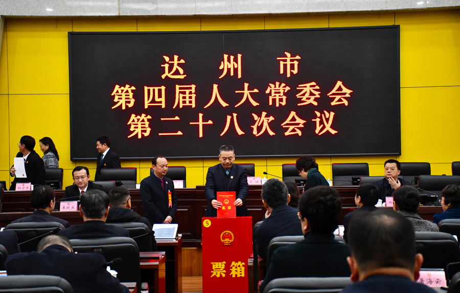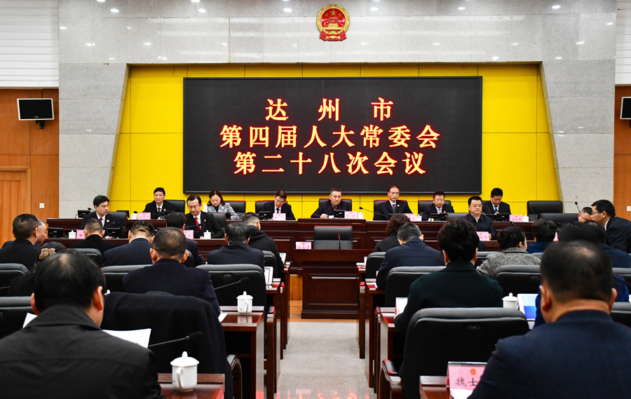 1月14日,达州市第四届人大常委会第二十八次会议召开。市人大常委会主任胥健主持会议。市人大常委会副主任郑友清、胡兵、朱丰年、李梅、唐廷教,市人大常委会秘书长向守宇出席会议。