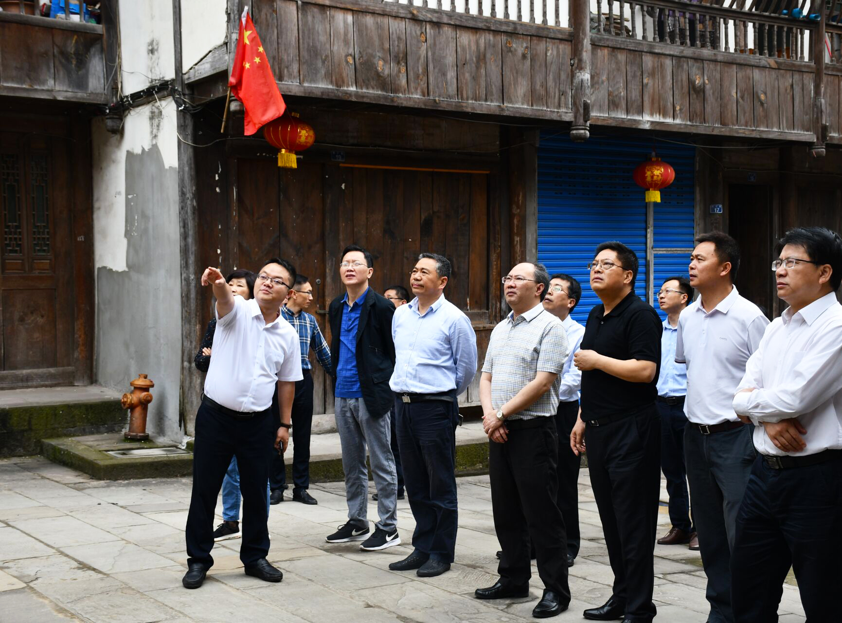 5月25号,市人大常委会主任胥健带队到达川区调研督导石桥古镇融合打造项目推进工作。