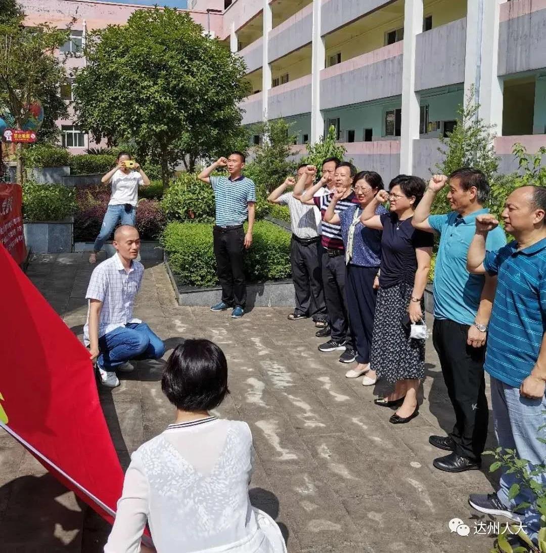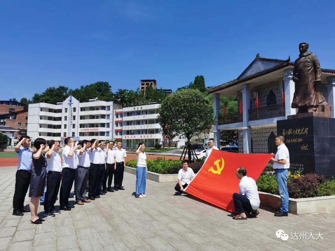 活动中,同志们参观了原达县县立第五高级小学校旧址、蒲家英烈园遗址、王维舟与宏文校纪念馆,在英烈园遗址、王维舟雕像前党员同志们庄严举起右手,重温入党誓词。