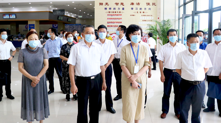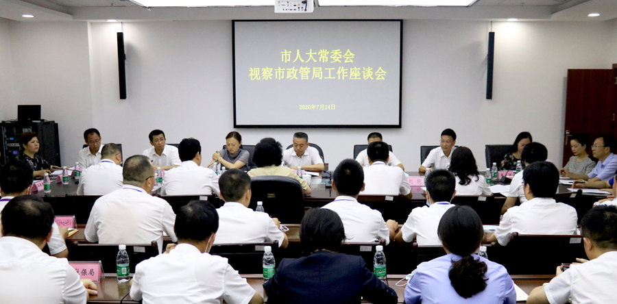 7月24日,市人大常委会主任胥健率队视察市政务服务管理局相关工作,查看了解新政务服务中心建设使用、单位入驻状况及窗口运行机制,并召开了座谈会。市人大常委会副主任朱丰年、李梅,市人大常委会秘书长向守宇参加视察。