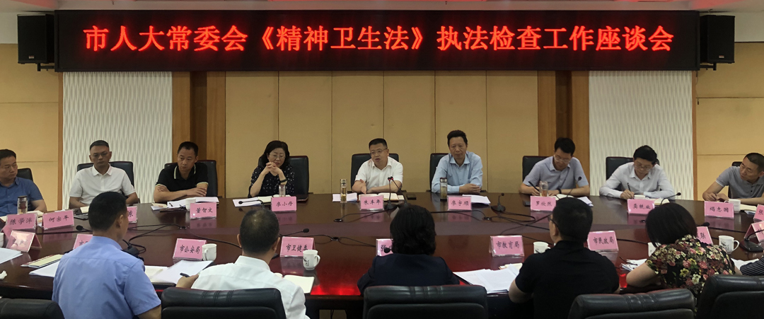 6月3日,在市人大常委会机关召开《精神卫生法》执法检查座谈会,朱丰年出席会议并讲话;受市人民政府委托,副秘书长、二级巡视员张晓东作了全市贯彻落实《精神卫生法》的情况汇报,市公安局、市民政局、市卫健委、市医保局、市残联、市精神卫生中心等部门补充报告了《精神卫生法》执行情况,执法检查组成员提出了意见建议。